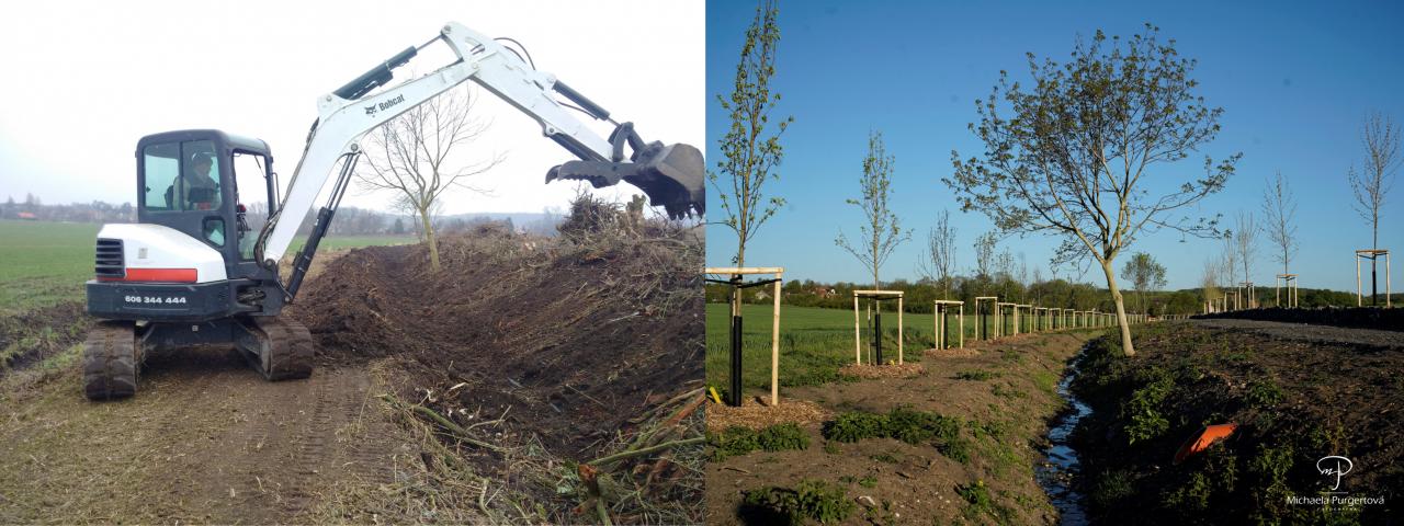 obecným pravidlem bývá, že pokud je něco nebezpečné, zaměřujeme se na to, abychom to jednotlivě nebo společně učinili bezpečným. Od roku 2003, kdy se silnice č.16 zprovoznila a přetnula přirozenou polní cestu směrem k vesnicím Budihostice, Dolní Kamenice, Černuc a královskému městu Velvary , došlo v úseku 6km k tolika vážným nehodám a úmrtím, že se tato silnice zařadila mezi prvních 10 nejhorších v ČR. Zastupitelé obce v čele s panem starostou Šimralem se rozhodli situaci vyřešit obnovou původní staré cesty. V mapě již v roce 1840 tímto směrem obce spojovala úvozová cesta. Nechali proto odstranit letité nálety, pařezy, pročistit potok, skrýt ornici a zpevnit její pochozí část. V souladu s všeobecně podporovaným trendem hospodaření s vodu v krajině, nechali podél celé této cesty zhotovit zádržnou terénní vlnu. Nyní při dešti voda z pole neodteče do potoka, ale vsákne se a tím napomůže růstu Platanové áleje. Platanová álej je posazena na západní stranu, aby Vás mohla těšit svým blahodárným stínem. Pod korunami nabízí i lavičky pro odpočinek. Šikmá strana k potoku je oseta lučním kvítím a trávami. Pro zvířata se zhotovil i remízek s tůní, krmelcem pro srny, krmítkem pro ptáky a s mostkem, aby ho mohly doplňovat i děti. Pro zvěř na zimu se vysadily 2 kaštany, co zaplní plochu plody, rakytníkem a kustovnici čínskou, která je zdravá pro všechny. Aby si Uhovští i Ti co tudy jen prochází připomněli jaké to bývalo, když člověk člověku vysadil strom, vysadili ovocnou álej z chrupek, švestek, hrušek a jabloní. Celá desetiletí rostl u hřiště Topol. Dosahoval výšky více jak 20ti metrů. Z části byl již proschlý a při poryvech větru hrozil pádem na silnici. Musel se pokácet. Pan starosta chtěl, aby se jen tak nevytratil. U propustku se s ním můžete znovu setkat. Je z něj altán a posezení. Na děti i romantiky bylo myšleno houpačkou a malou rozhlednou z vrby. Firma Zahrady snů, symbolicky 1.máje darovala mezi sedm korun jabloní dřevěnou sochu milenců a naproti přes potok bylo vysazeno 40ks motýlovníků. Napříč propustkem vede pozinkový rošt, který bezpečně umožní překonat silnici č.16, aby nás za propustkem vybídl k pokračování směr Velvary. Přáním a myšlenkou zastupitelstva obce Uhy je povzbudit okolní obce k obnově cest, které by bezpečně spojovaly naše obce a těšily by nás při společných výletech.